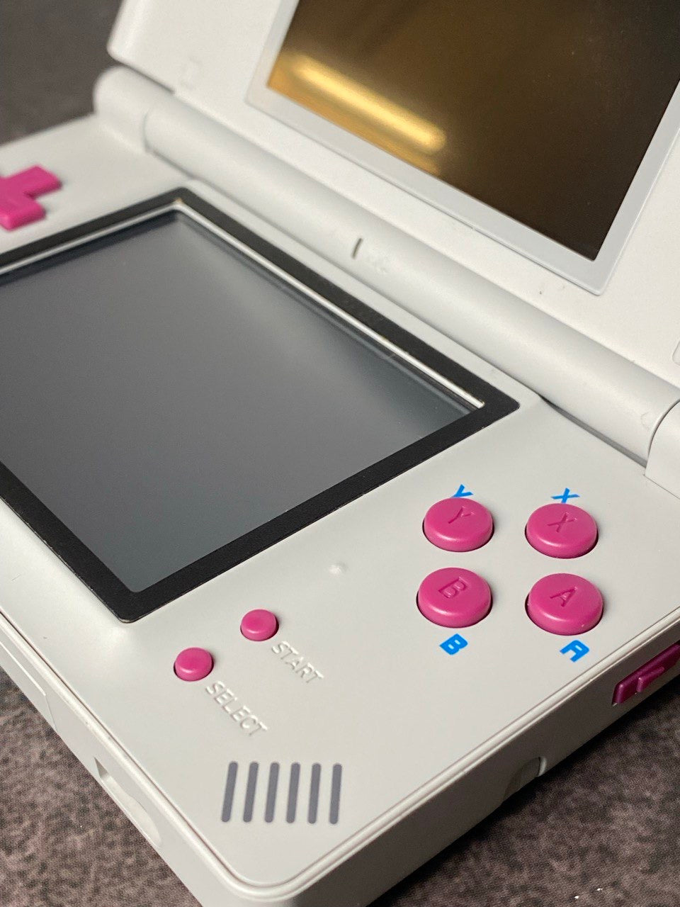 - Brand-new custom shell in retro Game Boy DMG style with pink D-pad and buttons.